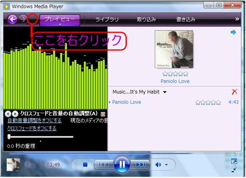 | または再生コントロールの左右にある空白の領域を右クリックして、 |