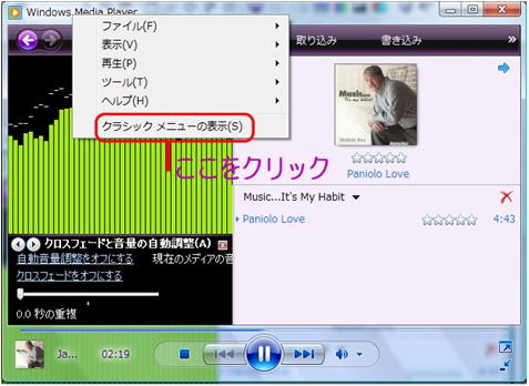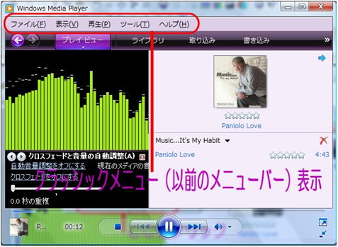 | WMP9.0にあったメニューバーがないので操作しずらい。 |
